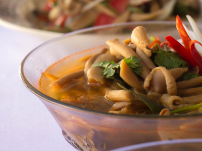 ‘เห็ดปลวก’ เป็นเห็ดโคนที่เติบโตได้ดีในสภาพธรรมชาติ ความชื้นและอุณหภูมิที่พอเหมาะ และเนื่องจากจอมปลวกเป็นแหล่งที่มีความชุ่มชื้นที่เหมาะสม เมื่อฝนตกทำให้ปลวกทำการอพยพออกจากรังเดิม ก็จะปรากฏตุ่มดอกเห็ดเล็ก ทำให้เห็ดที่โตจากจอมปลวกนั้น เป็นดอกเห็ดที่มีคุณภาพ ความชุ่มชื้นสูง โดยปกติแล้ว เห็นโคน ค่อนข้างหายาก และออกผลผลิตให้ทานปีละครั้ง ทำให้มีราคาแพง มีรสชาติหวานอร่อยกว่าเห็ดอื่นๆ ปรุงง่ายเพียงต้มกับเกลือก็ได้น้ำต้มเห็ดรสหวานตามธรรมชาติ นอกจากนำไปต้มกับน้ำเกลือแล้วเราอาจนำเห็ดโคนไปประกอบอาหารที่หลากหลาย สรรพคุณช่วยเจริญอาหาร บำรุงกำลัง แก้บิด แก้คลื่นไส้ อาเจียน แก้ไอ ละลายเสมหะ เห็ดปลวก 100 กรัม ให้พลังงาน 48.72 kcal อาหารปรุงสุก พร้อมรับประทานหรือนำไปประกอบอาหาร